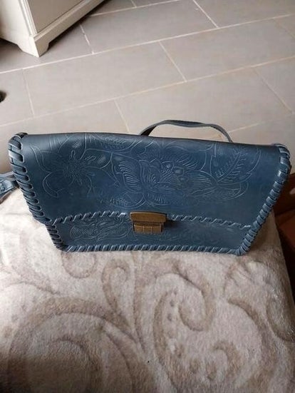 Bewerk met bloemen, deze zijn in de tas gekerfd