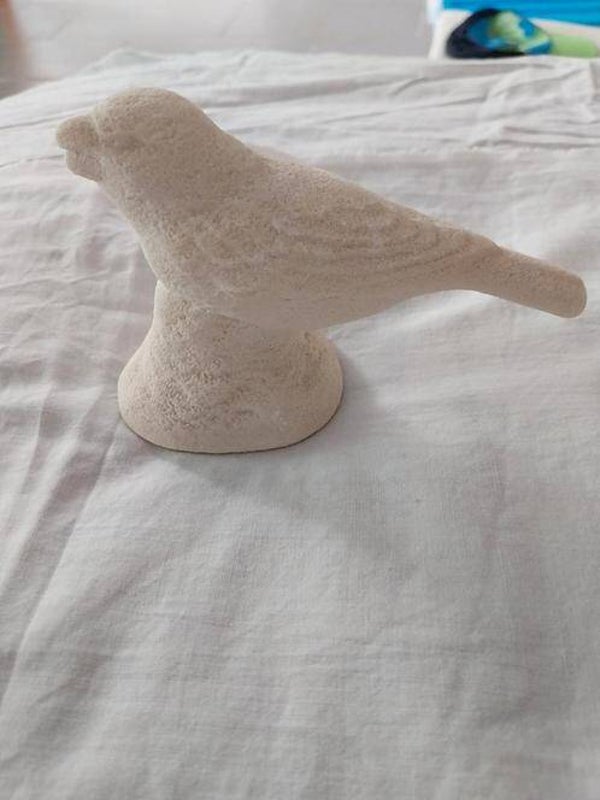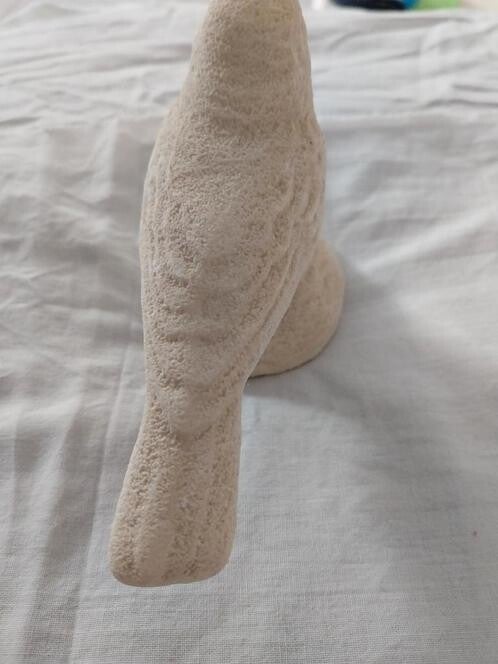Staat op kleine sokkelGemaakt van klei (?)De vleugels ed zijn duidelijk te herkennenSokkel is hol13,5 cm lang6,5 cm breed8,7 cm hoog