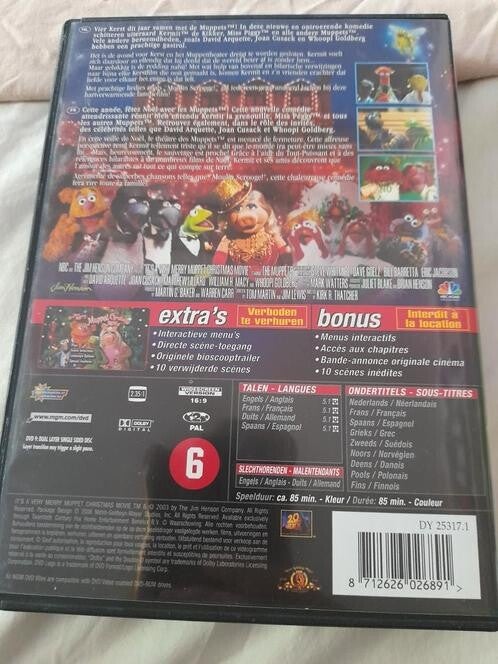 Dvd The Muppet christmas showVoor 6 jaar en ouderSpeelduur 85 minutenTalen : Engels, Frans, Duits en SpaansOndertiteling : Nederlands, Spaans, Frans, enzIn nette staat