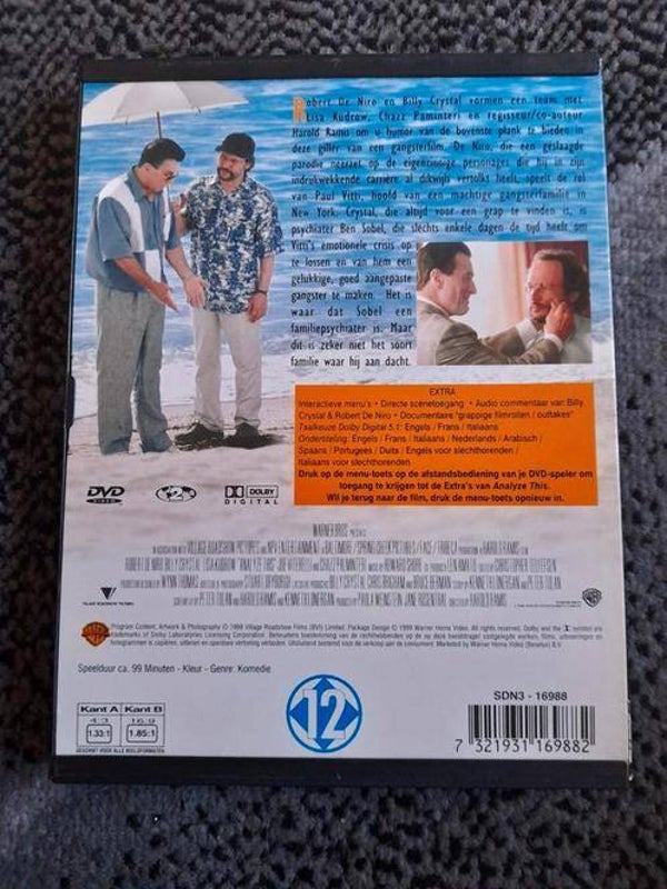Dvd analyze thisVoor 12 jaar en ouderSpeelduur 99 minutenTaal : Engels, Frans en ItaliaansOndertiteling : Engels, Frans, Duits, Nederlands enzIn nette staat2x aanwezig
