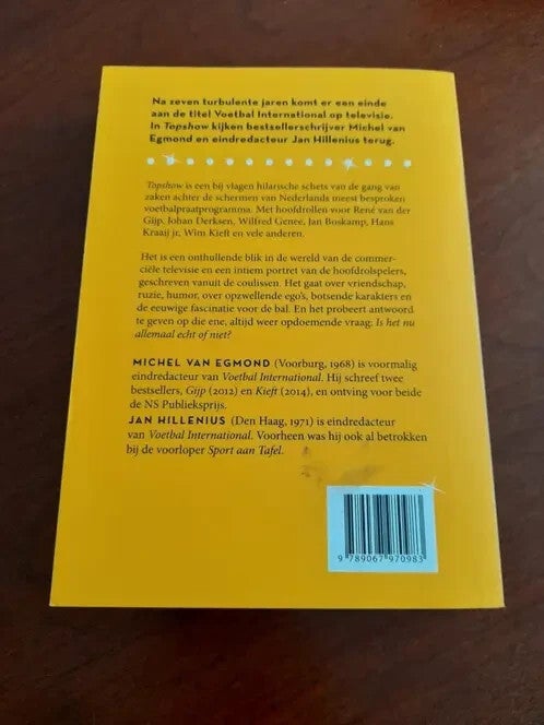 Ondertitel: achter de schermen bij Voetbal International Taal: Nederlands; Vlaams Contributors: Joke Jonkhoff Na zeven turbulente jaren is er een einde gekomen aan de titel Voetbal International op televisie. In Topshow kijken bestsellerschrijver Michel van Egmond en eindredacteur Jan Hillenius terug. Topshow is een bij vlagen hilarische schets van de gang van zaken achter de schermen van Nederlands meest besproken voetbalpraatprogramma. Het is onthullende blik in de wereld van de commerciële televisie en een intiem portret van de hoofdrolspelers, geschreven vanuit de coulissen. Het gaat over vriendschap, ruzie, humor, over opzwellende ego's, botsende karakters en de eeuwige fascinatie voor de bal.En het probeert antwoord te geven op die ene, altijd weer opdoemende vraag: Is het nu allemaal echt of niet? Michel van Egmond (Voorburg, 1968) is voormalig eindredacteur van Voetbal International. Hij schreef twee bestsellers, Gijp (2012) en Kieft (2014), en ontving voor beide de NS Publieksprijs...