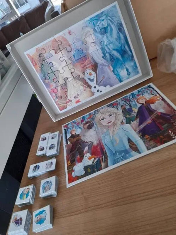 2 frozen puzzels van 30 stukjes per puzzel Memo van 48 kaartjes En domino van 28 kaartjes Geheel compleet en netjes zoals te zien op de foto's