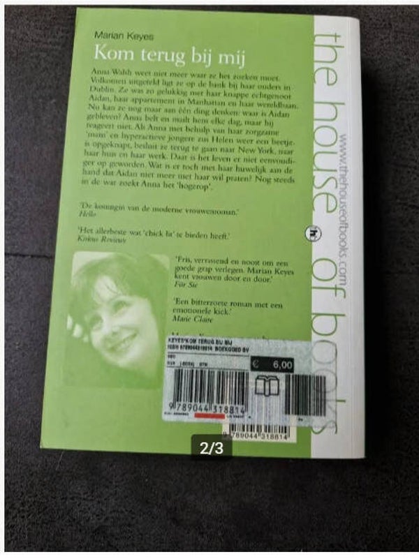 Contributors: Ellis Post-Uiterweer; Dennis Keesmaat Marian Keyes Kom terug bij mij Anna Walsh weet niet meer waar ze het zoeken moet. Volkomen uitgeteld ligt ze op de bank bij haar ouders in Dublin. Ze was zo gelukkig met haar knappe echtgenoot Aidan, haar appartement in Manhattan en haar wereldbaan. Nu kan ze nog maar aan één ding denken: waar is Aidan gebleven? Anna belt en mailt hem elke dag, maar hij reageert niet. Als Anna met behulp van haar zorgzame mam en hyperactieve jongere zus Helen weer een beetje is opgeknapt, besluit ze terug te gaan naar New York, naar haar huis en haar werk. Daar is het leven er niet eenvoudiger op geworden. Wat is er toch met haar huwelijk aan de hand dat Aidan niet meer met haar wil praten? Nog steeds in de war zoekt Anna het 'hogerop' Marian Keyes woont met haar man in Dublin. Dit is haar achtste bestseller.
