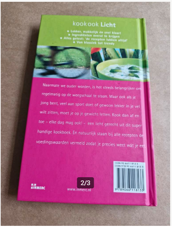 Naarmate we ouder worden, is het steeds belangrijker om regelmatig op de weegschaal te staan. Maar ook als je jong bent, veel aan sport doet of gewoon lekker in je vel wilt zitten, moet je op je gewicht letten. Kook dan af en toe - elke dag ma gook! - een licht gerecht uit dit super handige kookboek. En natuurlijk staan bij alle recepten de voedingswaarden vermeld zodat je precies weet w je eet.