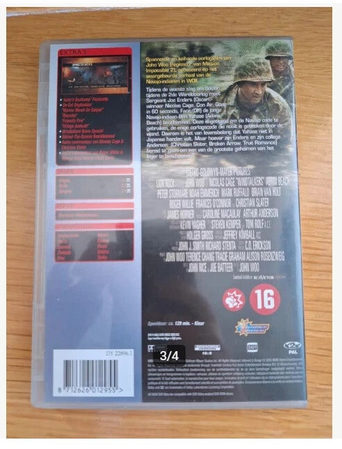 Waargebeurd oorlogDvd windtalkersVanaf 16 jaarEngels, Duits en Spaans gesprokenDiverse talen ondertiteldSpeelduur 129 minuten