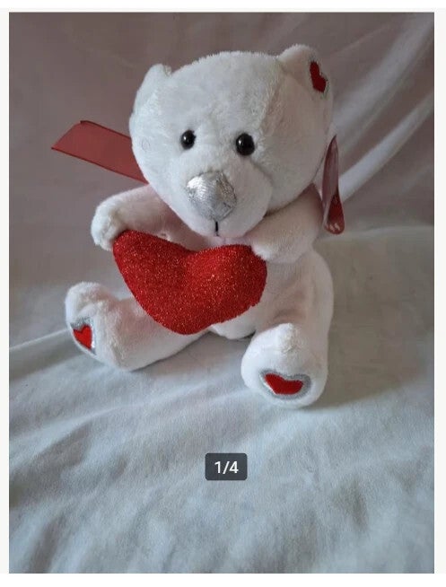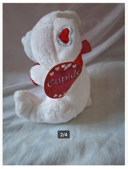 BeerVan CupidsCupids knuffelWitMet rood glitter hartGrote rode strik16 cm hoog13 cm diep12 cm breedNieuw met kaartje