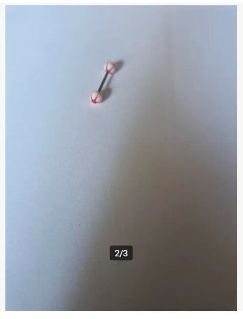 Tongpiercing wit met rode sterNr12Roestvrij staal2mm dik6mm balletje15mm staafje26mm lengte piercingNieuw