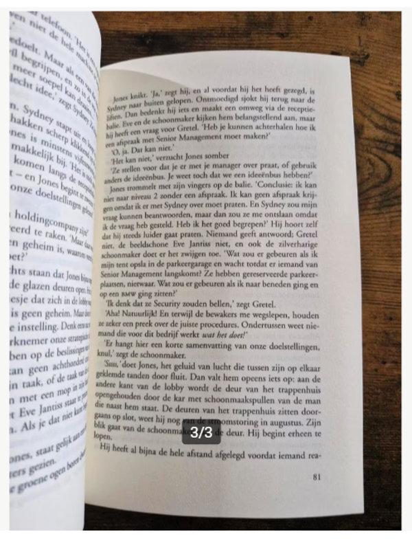 Bij Zephyr Holdings heeft nog niemand ooit de directeur gezien. De knappe receptioniste verdient twee keer zoveel als de rest, maar haar werkplek is nooit bezet. De ene vertegenwoordiger gebruikt relatieboeken als verkoophandleiding, weer een ander is op oorlogspad omdat iemand zijn donut heeft gestolen. Met andere woorden, een alledaags groot bedrijf. Tenminste... dat denkt iedereen. Maar dan is daar opeens de nieuwe medewerker Jones die tegen het uitdrukkelijke advies van zijn collega's in op onderzoek uitgaat, want waarmee verdient Zephyr Holdings nu eigenlijk haar geld?