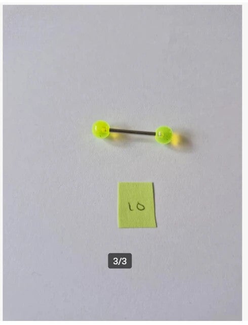 Tongpiercing doorzichtig groenNr10Roestvrij staal2mm dik6mm balletje15mm staafje26mm lengte piercingNieuw