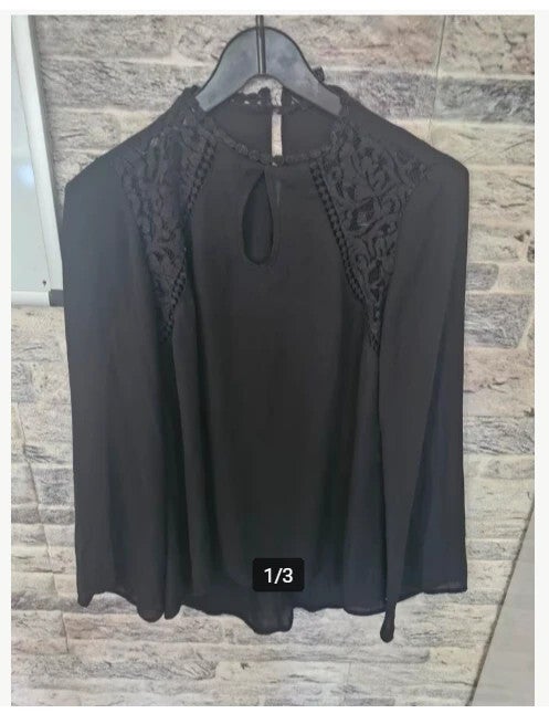 Zwarte blouse Met kant Maat s Merk amisu In nette staat 40cm oksel tot oksel 65 schouder tot onderaan
