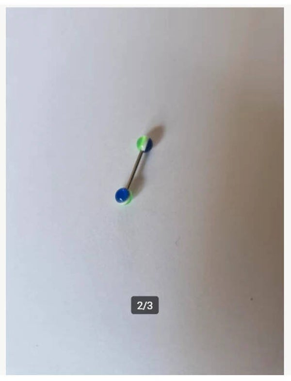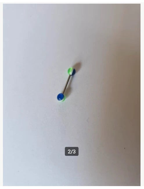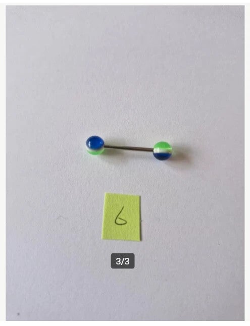 Tongpiercing blauw groen Nr6 Roestvrij staal2mm dik 6mm balletje 15mm staafje26mm lengte piercingNieuw