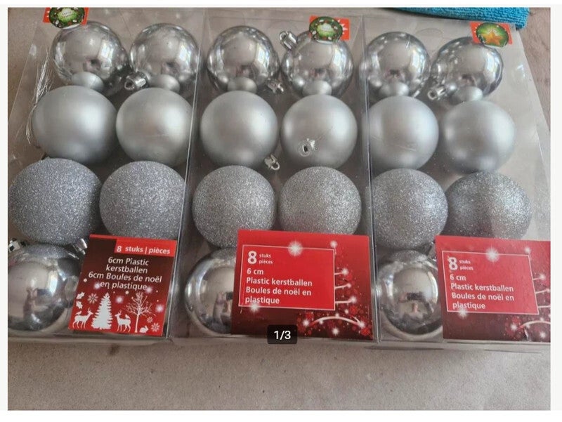 3x 8 stuks zilverkleurige kerstballen 6cm