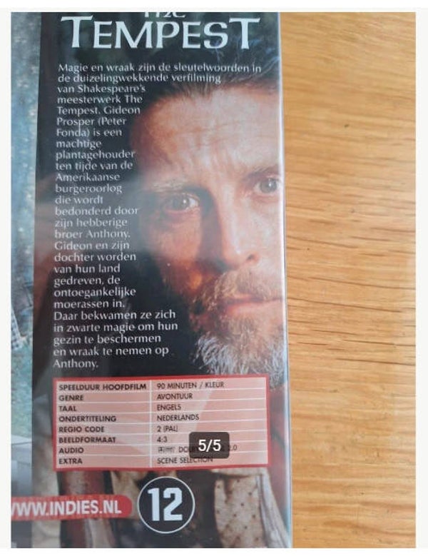 Avontuur2 dvd's in 1- Ulee's gold: thriller, vanaf 16 jaar,Engels gesproken Nederlands ondertiteld Speelduur 108 minuten- The tempest: avontuur, vanaf 12 jaar, Engels gesproken Nederlands ondertiteld Speelduur 90 minuten
