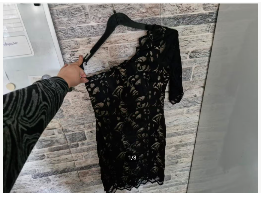 Zwarte kanten jurkMet bruine onderjurk1 schouderMaat mMerk h&mIn nette staat38cm oksel tot oksel75cm schouder tot onderkant jurk