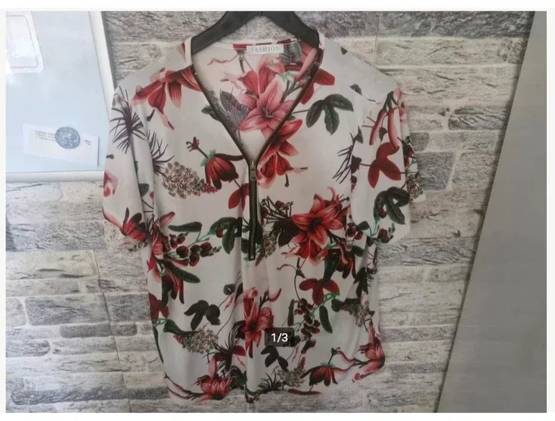 Witte blouseMet roze bloemenMaat M/LMerk onbekendIn nette staat