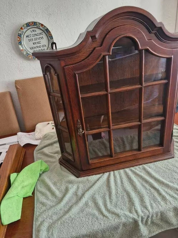 Klassiek vitrine kastjeHeeft 3 lagen in de kastMerk : baumann69cm hoog65cm breed18,5cm diepIn zeer nette staat