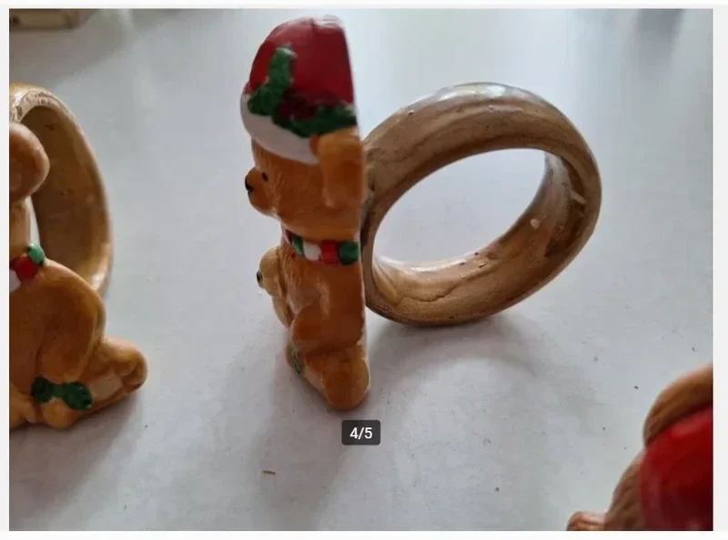 Set van 4 servetringenMet kerstberenVan gips2 met grote en kleine beer2 met papa en mama beer7 cm lang6,5 cm breed5,5 cm doorsnede