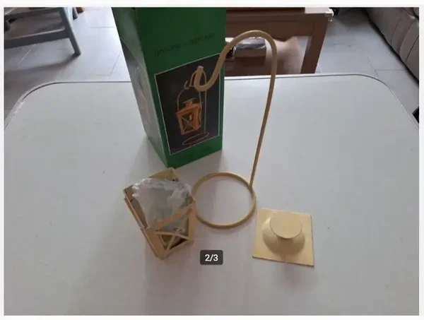 Lantaarn met standaardBeigeIjzer/aluminium7 delig:1 standaardLantaarn met deksel4 glaasjes voor lantaarn24,5 cm hoog10 cm doorsnede onderkant standaardNieuw, alleen uit doos gehaald voor foto