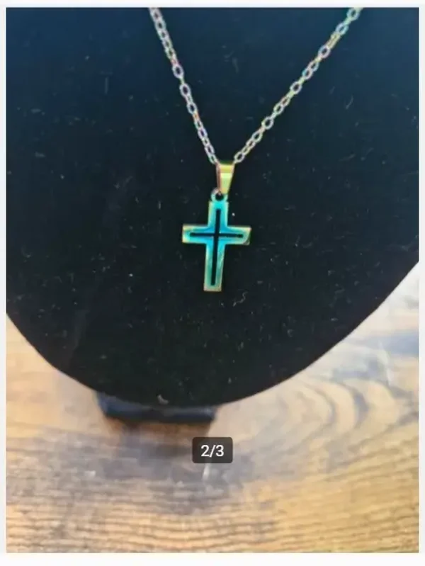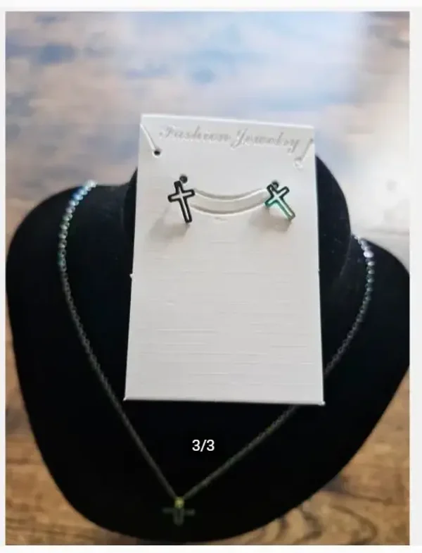 Gekleurde kruisketting van roestvrij staat met oorbellen 1