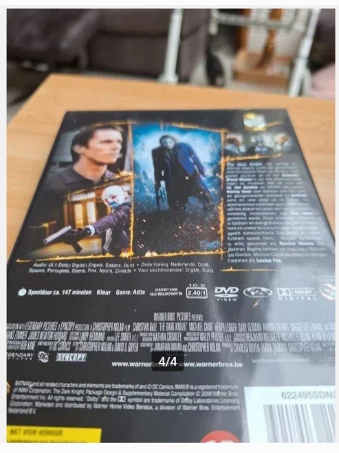 AktieDvd the dark knightVanaf 16 jaarEngels, Duits en Spaans gesprokenDiverse talen ondertiteldSpeelduur 147 minuten