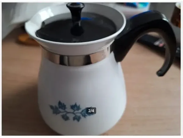 Emaille 3kwart theekanVan PyroflamVitrokeramiek15 cm hoogOnderkant 15 cm doorsnedeTotale breedte ca 20 cm