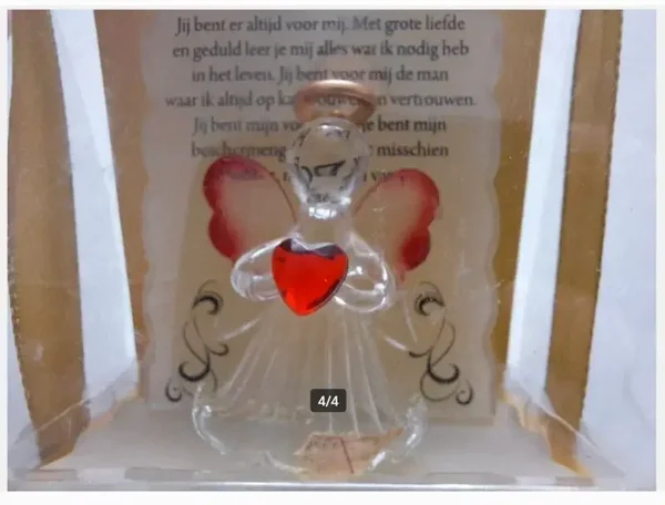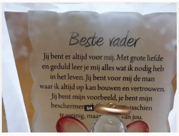 Beste vader gedichtHandgeblazen engelDaarachter een gedicht "beste vader"Heeft alleen in de kast gestaanNieuw in verpakking
