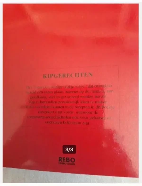 KookboekKip gerechtenUitgegeven door Rebo uitgeverij64 bladzijdenSoftcoverGekocht maar nooit gebruikt