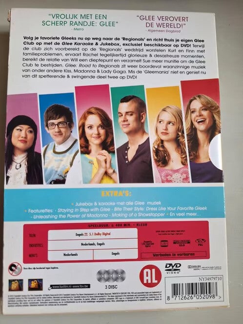MuziekDvd box GleeSeizoen 1, deel 23 dvd boxAfleveringen 1 t/m 9Alle leeftijdenEngels gesprokenNederlands en Engels ondertiteldTotale speelduur 400 minuten