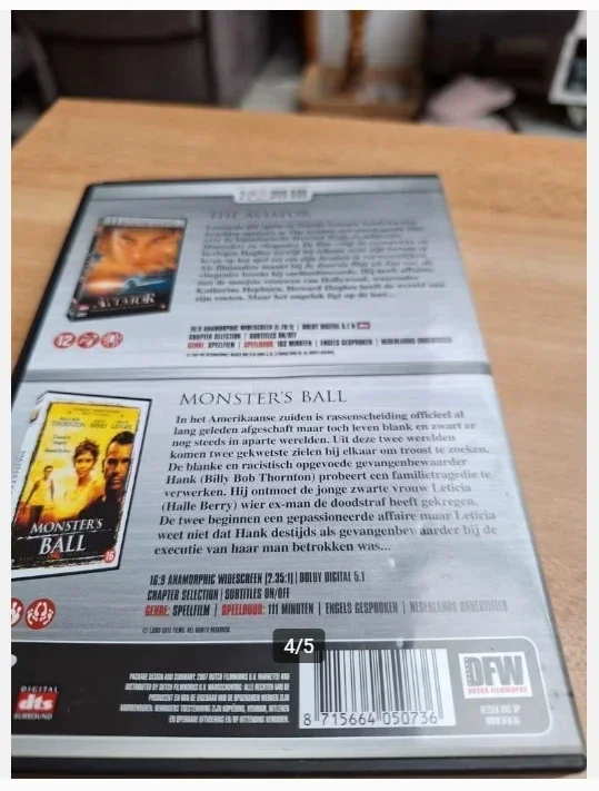 AktieDvd the aviator en monster's ball- the aviator: Vanaf 12 jaarEngels gesprokenNederlands ondertiteldSpeelduur 163 minuten- monster's ball: Vanaf 16 jaarEngels gesprokenNederlands ondertiteldSpeelduur 111 minuten