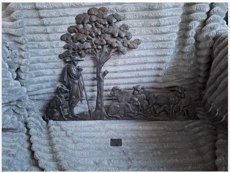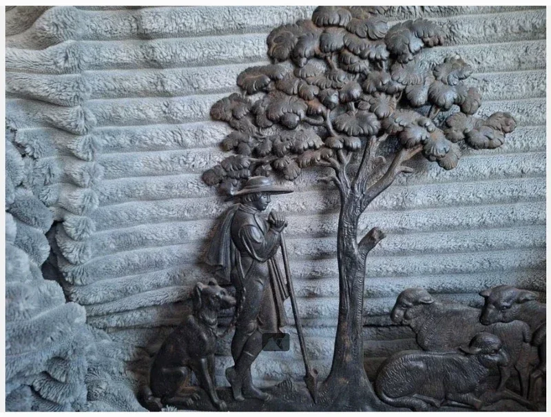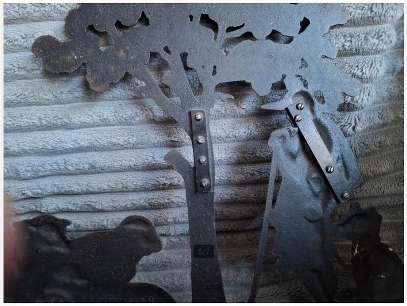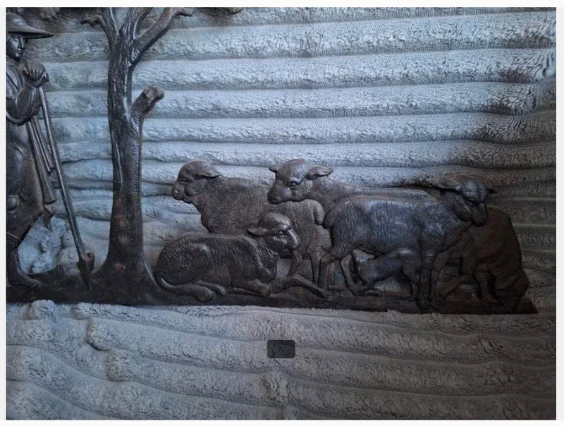 AntiekVan tinAfbeelding van herder met hond en kuddeBeeld is kapot geweest en aan de achterkant gerepareerdGemaakt in DuitslandEr staat 19 op de achterkant44,5 cm breed31,5 cm hoog