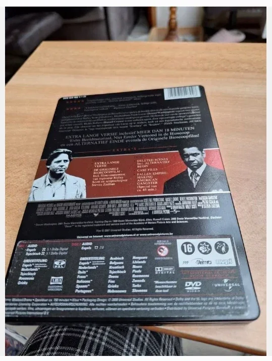 MisdaadDvd American gangster, steelcaseLimited edition2 dvd'sVanaf 16 jaar- Dvd 1: Engels en Tsjechisch gesprokenDiverse talen ondertiteld- Dvd 2: Engels gesprokenDiverse talen ondertiteldTotale speelduur 150 minuten