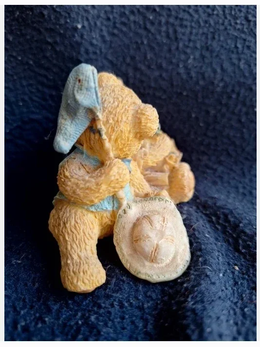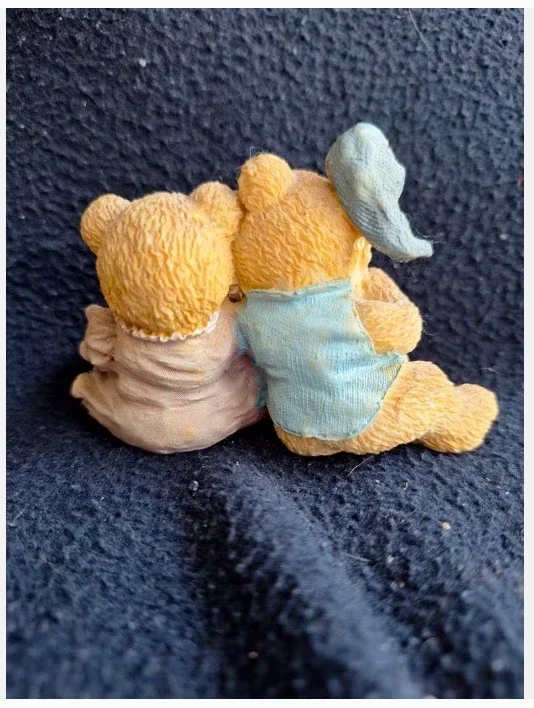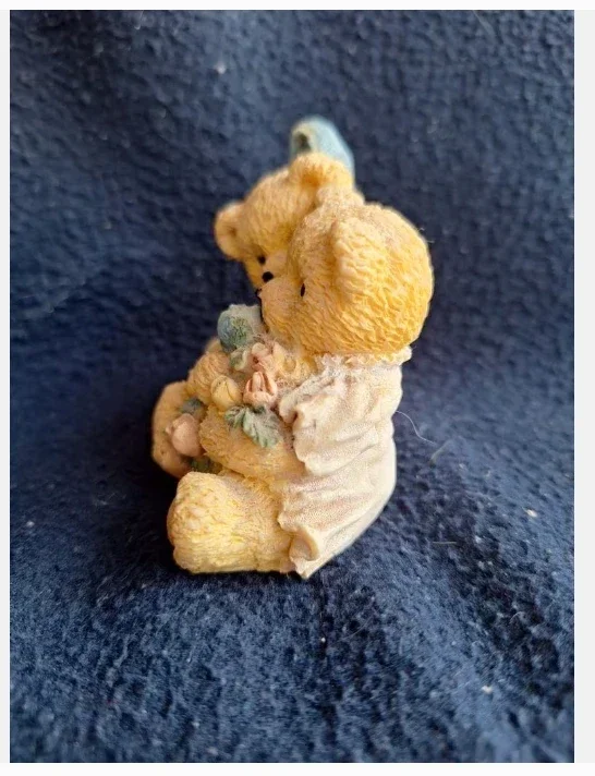 Beeldje2 beren, jongen en meisjeJongen heeft vlindernet vastMeisje heeft bloemen vastKleuren zijn niet meer helder door staan in de kast6,5 cm hoog10 cm breed5 cm diep