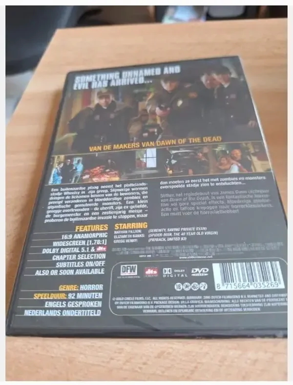 HorrorDvd slitherVanaf 16 jaarEngels gesprokenNederlands ondertiteldSpeelduur 92 minutenNieuw in de verpakking
