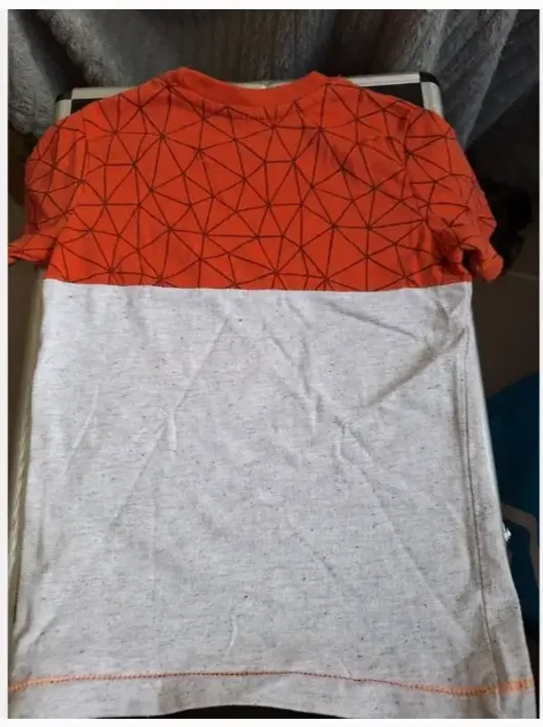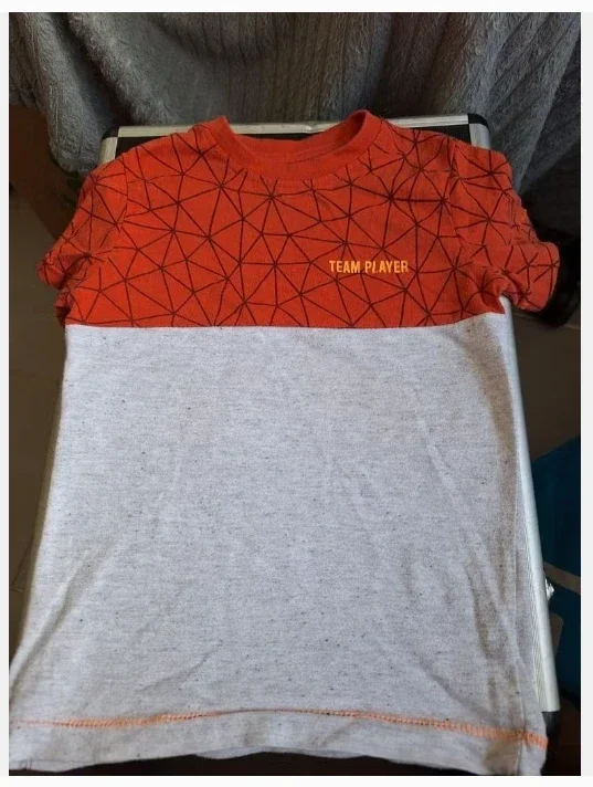 Grijs shirt met rood gestreept gedeelte