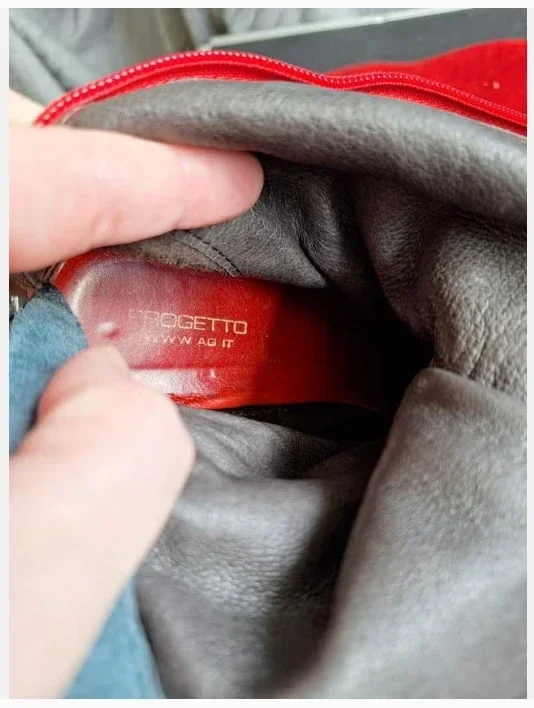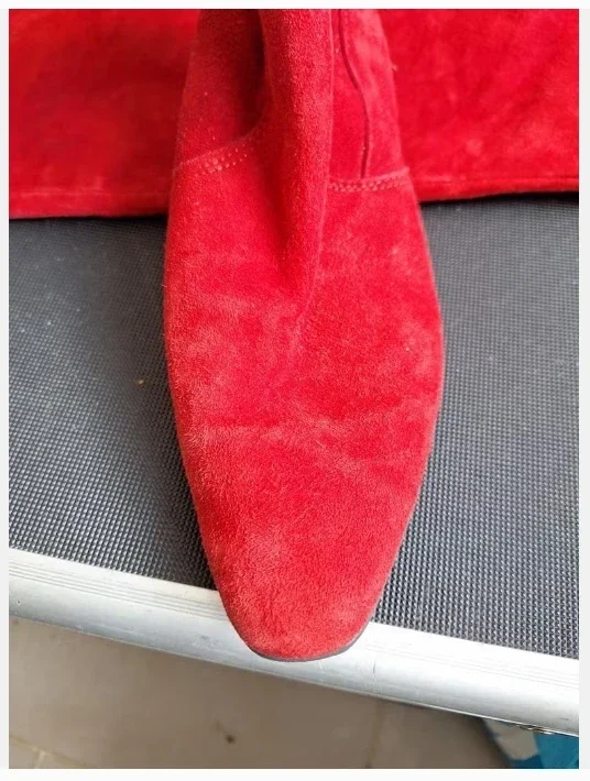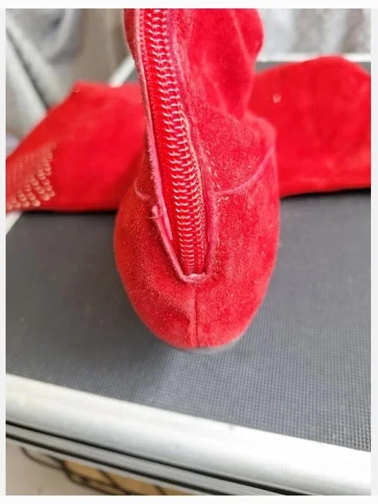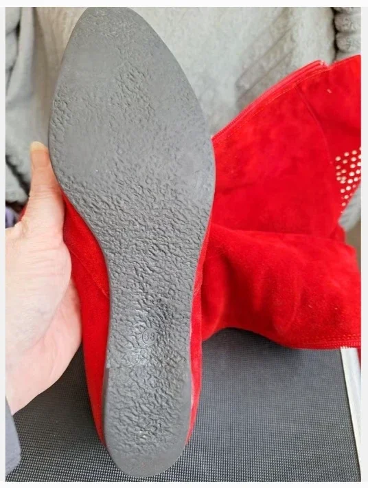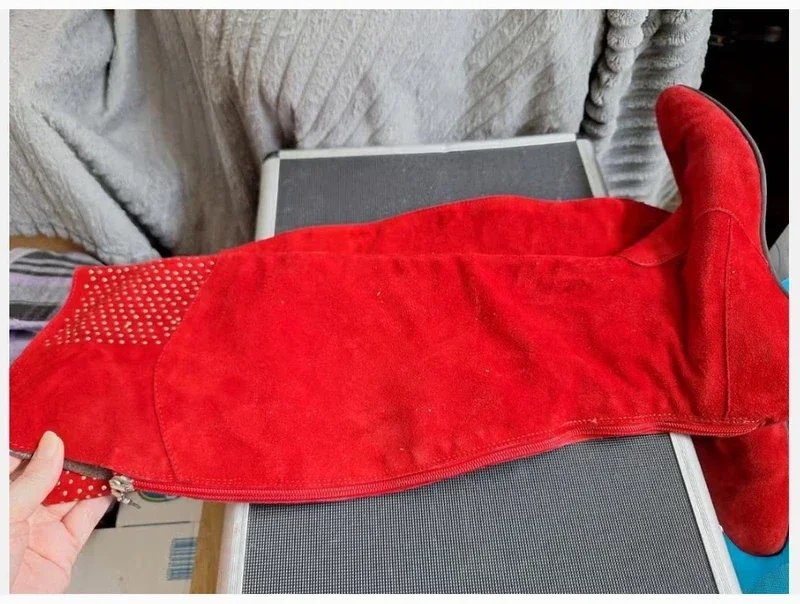 LaarzenMerk ProgettoRoodLang 51 cmGoudkleurige studs aan de bovenrandBreedte bij de kuit ca 32 cmPlatte hak