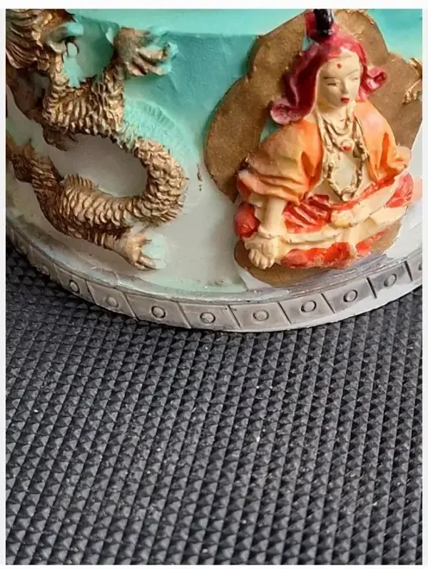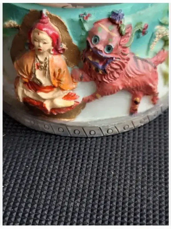 Op de onderrand boeddha, draak en meer